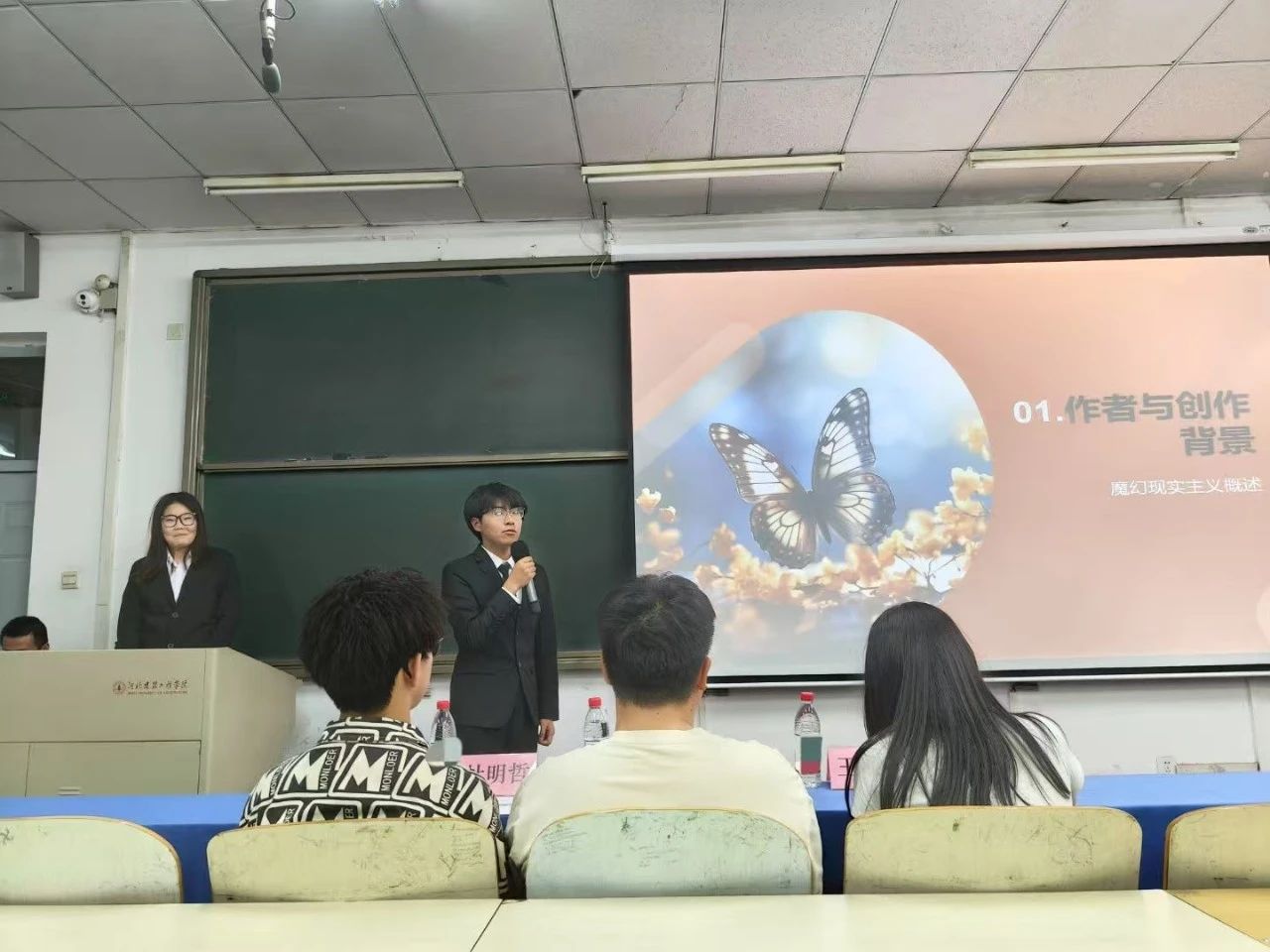 比赛共分为两个环节。在“感我之言”环节,参赛选手通过精心制作的PPT,将经典著作的阅读感悟娓娓道来,讲出了个人的独到见解,在文本细读中实现了对文学经典的诠释。